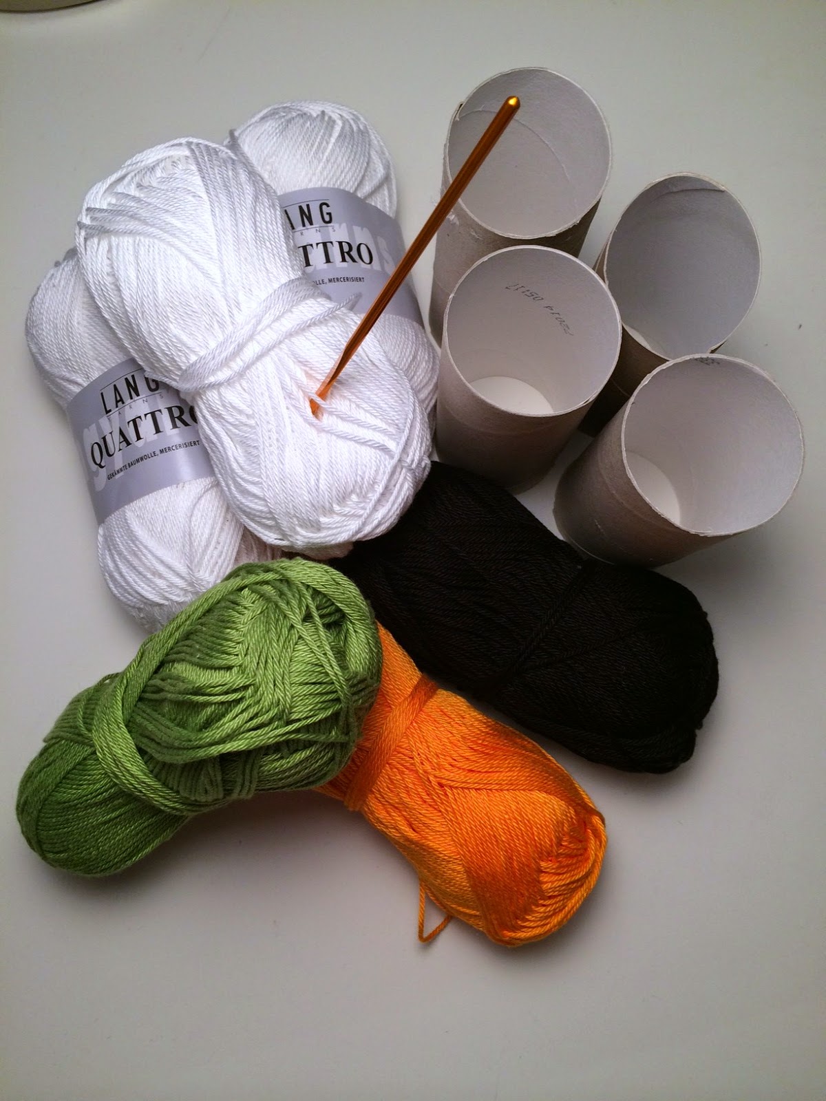- bevor Du loshäkelst, kürz bitte die Klorolle um ca. 2-3 cm, dann passen die Proportionen später besser. Du kannst das aber auch am Schluß machen